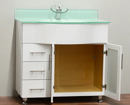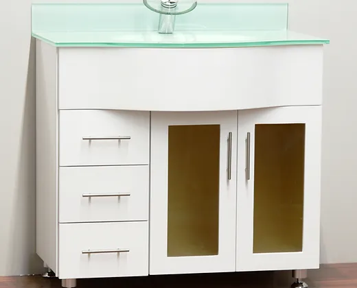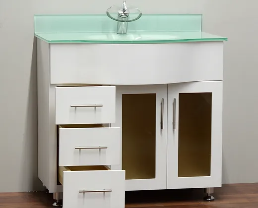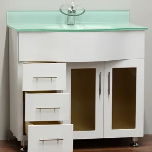 36″ Solid Wood Vanity with Glass Countertop – TC – 3602